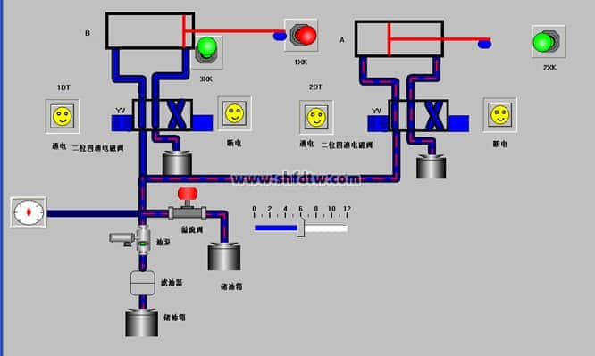 五、通過(guò)組態(tài)仿真畫面演示及控制的液壓回路示列