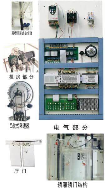 本群控電梯模型是根據(jù)最常見(jiàn)的升降式電梯結(jié)構(gòu),采用透明有機(jī)材料制成,其結(jié)構(gòu)與實(shí)際電梯完全相同,且?guī)缀蹙邆淞藢?shí)際電梯的所有功能。為了便于教學(xué),六層透明仿真電梯大部分部件均是采用透明有機(jī)材料制成,使得電梯的內(nèi)部結(jié)構(gòu)一目了然;同時(shí),教學(xué)電梯模型的運(yùn)行過(guò)程,以及每個(gè)動(dòng)作都十分明了,且可以反復(fù)實(shí)際動(dòng)手操作。能夠很直觀(guān)、透徹地了解、掌握電梯的結(jié)構(gòu)及其動(dòng)作原理,達(dá)到事半功倍的效果。解決了以往電梯教學(xué)中單純的理論教學(xué)方式或是參觀(guān)實(shí)際電梯時(shí)所帶來(lái)的不安全,無(wú)法全面了解其內(nèi)部結(jié)構(gòu)及運(yùn)行過(guò)程等種種實(shí)際問(wèn)題。