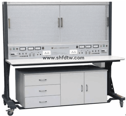 本實訓臺由實訓屏(內(nèi)置電源)、實訓桌、實訓儲物柜三大部分組成。