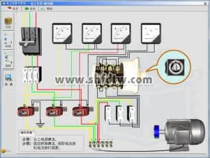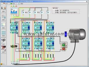 學員可以操作空氣開關(guān),按鈕等元器件來操控相應項目的電路。界面上的接觸器、時間繼電器等元器件就可以根據(jù)操作控制電機的轉(zhuǎn)動。