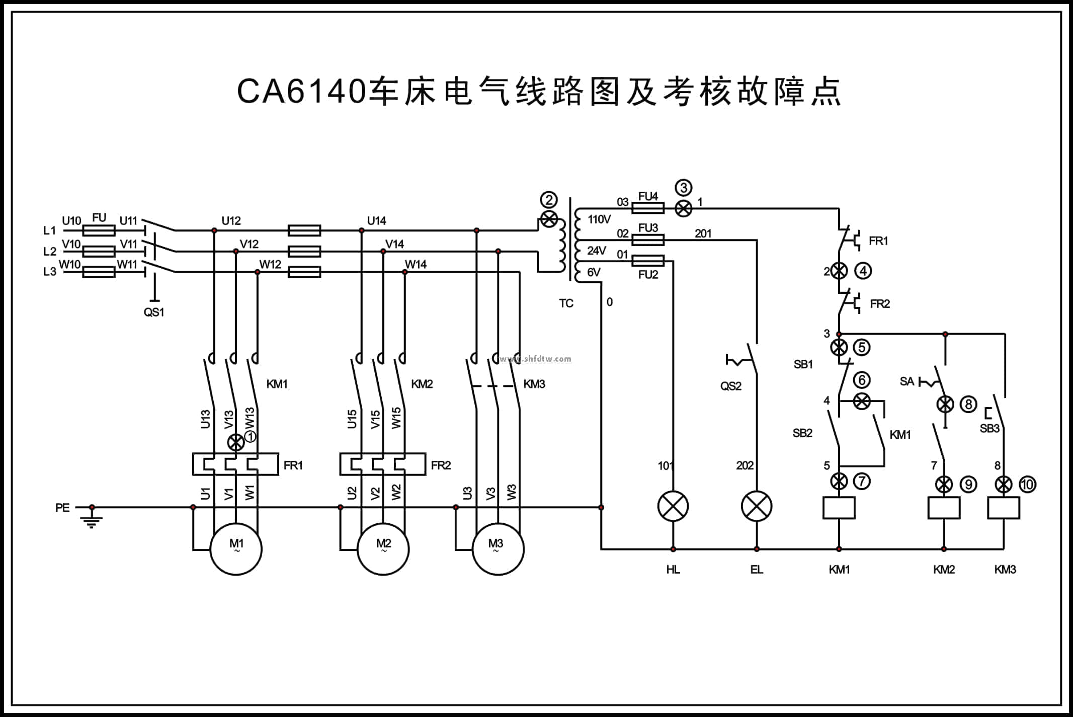 CA6140車(chē)床電氣線(xiàn)路圖及考核故障點(diǎn)