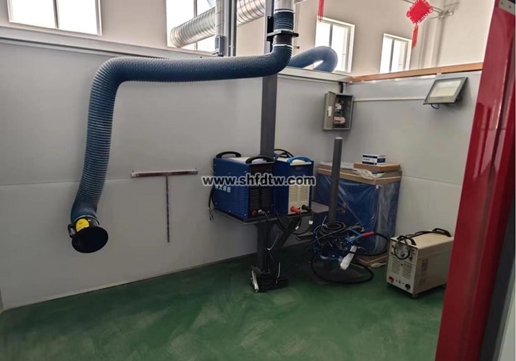 3、3米阿爾法柔吸臂,合理分配,布局美觀分組安裝處理焊接煙塵,每個(gè)柔吸臂口都有開關(guān),當(dāng)使用時(shí)可以打開,不使用時(shí)可以關(guān)閉。螺旋風(fēng)管組合合理,風(fēng)量壓力計(jì)算準(zhǔn)確。