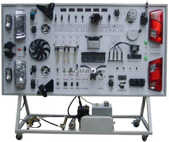 ●萬(wàn)向自鎖腳輪臺(tái)架活動(dòng)靈活,便于移動(dòng)教學(xué);整體臺(tái)架采用剛性結(jié)構(gòu)焊接,所用材料冷軋板采用國(guó)標(biāo)標(biāo)準(zhǔn)材料,支撐可靠,表而噴塑處理防腐蝕抗老化,不褪色,控制面板采用純鋁塑板,控制面板上繪有彩色與原車(chē)控制系統(tǒng)相一致的直觀(guān)電控系統(tǒng)原理圖,并配有使用說(shuō)明書(shū)及實(shí)驗(yàn)指導(dǎo)書(shū)等。