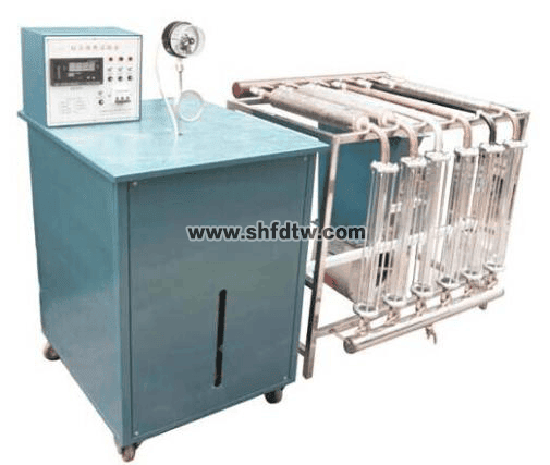 紫銅傳熱管道(銅裸管、涂黑管、翅片管、玻璃絲棉保溫管、鋸末保溫管、鍍鉻管各一組),調(diào)節(jié)閥門組,蒸汽發(fā)生器,熱風幕風機,壓力控制器及溫度保護裝置,不銹鋼臺架及控制屏等。