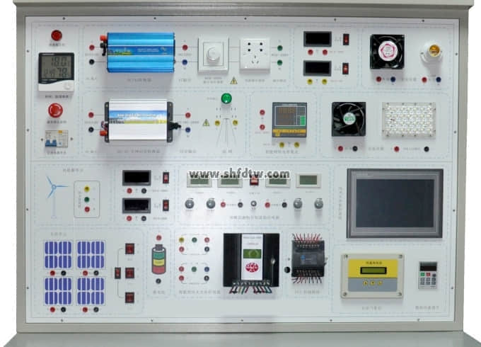風(fēng)光互補(bǔ)并網(wǎng)發(fā)電與機(jī)電實(shí)訓(xùn)系統(tǒng)由太陽(yáng)能光伏電板、雙軸跟蹤控制模塊、蓄電池模塊、太陽(yáng)能控制器模塊、太陽(yáng)能逆變器模塊、模擬風(fēng)洞發(fā)電模塊、開關(guān)控制模塊、環(huán)境監(jiān)測(cè)模塊、上位機(jī)監(jiān)控模塊,儀表顯示部分,(各功能轉(zhuǎn)換接口模塊)等組成;各控制系統(tǒng)集成于風(fēng)能發(fā)電、光伏發(fā)電為一體的教學(xué)實(shí)訓(xùn)臺(tái);各系統(tǒng)通過(guò)連接電纜進(jìn)行連接,形成一套可完成風(fēng)力及光伏發(fā)電、同步并網(wǎng)、離網(wǎng)電源的實(shí)驗(yàn)及教學(xué)演示。幫助學(xué)生理解太陽(yáng)能并網(wǎng)、離網(wǎng)及風(fēng)力發(fā)電系統(tǒng)的原理,從而起到學(xué)習(xí)工程實(shí)際應(yīng)用技能的作用。