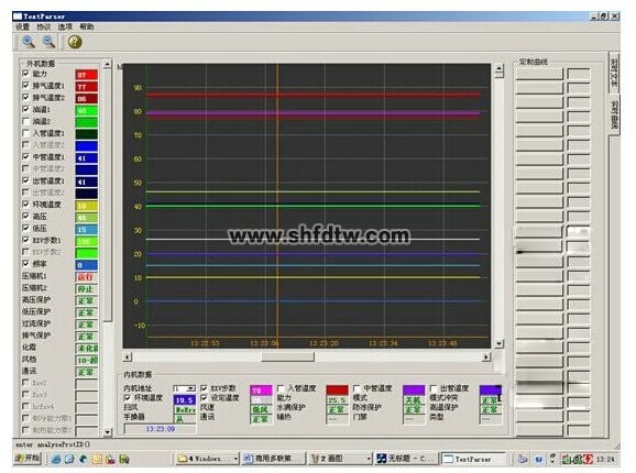 1、中央空調(diào)測(cè)試程序:中央空調(diào)機(jī)由于工程復(fù)雜,設(shè)備分散,有的已經(jīng)裝修在開花板上測(cè)試程序,一但出現(xiàn)了故障,工程量相當(dāng)大,為了能夠快速準(zhǔn)確地測(cè)出故障是由主機(jī)機(jī)組還是室內(nèi)機(jī)的故障的,每個(gè)生產(chǎn)廠家根據(jù)生產(chǎn)的和維修的需要而開發(fā)了中央空調(diào)測(cè)試程序??蓽y(cè)試壓縮機(jī)的運(yùn)轉(zhuǎn)頻率,傳感器的各種數(shù)據(jù),電子膨脹閥的工作步數(shù)等幾十種中央空調(diào)的工作數(shù)據(jù)和狀態(tài),軟件可實(shí)現(xiàn)對(duì)內(nèi)機(jī)的控制,,可以對(duì)1-64臺(tái)內(nèi)機(jī)的狀態(tài)進(jìn)行設(shè)定。是高校提供了好的研究的學(xué)習(xí)設(shè)備。