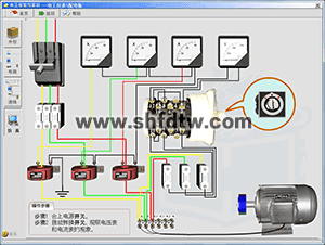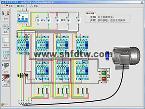 學(xué)員可以操作空氣開關(guān),按鈕等元器件來(lái)操控相應(yīng)項(xiàng)目的電路。界面上的接觸器、時(shí)間繼電器等元器件就可以根據(jù)操作控制電機(jī)的轉(zhuǎn)動(dòng)。
