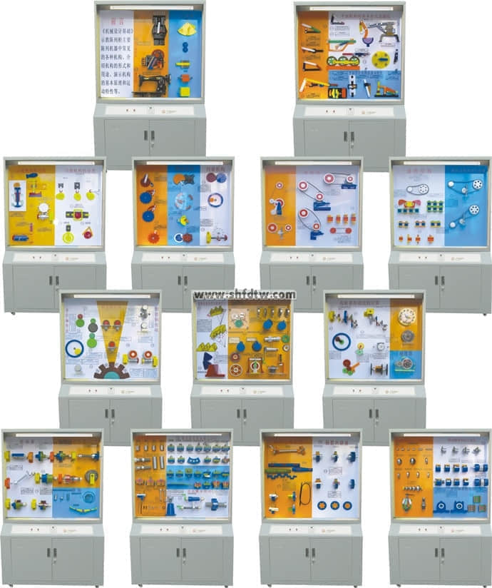 根據(jù)全國技工學(xué)校機械類通用教材研發(fā)出最新的《機械設(shè)計基礎(chǔ)》示教陳列柜是一套電化教學(xué)設(shè)備。本陳列柜共分十三個柜和一個電腦控制臺,聲控同步演示,采用單獨驅(qū)動由電腦或電子設(shè)備控制運轉(zhuǎn)嚴演示,可由VCD控制順序自動運行講解,又能根據(jù)教材、教學(xué)需要而遙控任意選擇還是單獨演示。天威教學(xué)模型材料采用進口有機板制造,板面附有銀滌淪不干膠作必要的圖表和文字說明,演示形象逼真,運行可靠,是一套現(xiàn)代化機械課程教學(xué)設(shè)備。