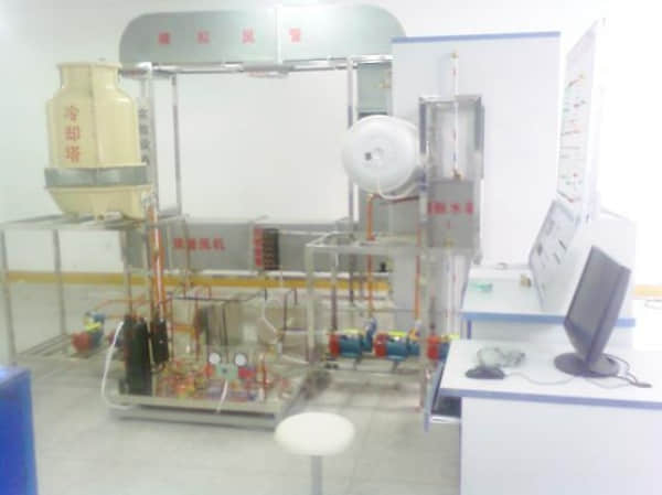 天威中央空調(diào)實(shí)驗(yàn)設(shè)備是將中央空調(diào)微型化,同時保持整個中央空調(diào)教學(xué)設(shè)備的完整性和合理性。本實(shí)驗(yàn)臺能單獨(dú)演示中央空調(diào)的夏天制冷、冬天制熱循環(huán),控制系統(tǒng)由總控臺采用數(shù)控電路控制。用溫度顯示器分別檢測蒸發(fā)器、冷凝器、冷卻塔、模擬鍋爐的進(jìn)出口溫度,便于學(xué)員觀察、了解各物理參數(shù)的變化情況和系統(tǒng)的工作狀況。實(shí)驗(yàn)臺增加了一些輔助結(jié)構(gòu),使其能人為地制造各種在實(shí)際中可能產(chǎn)生的系統(tǒng)故障,方便學(xué)員了解故障的產(chǎn)生和排除故障的方法。最大的特點(diǎn)是,通過傳感器將空調(diào)狀況實(shí)時反饋至電腦,能夠同時顯示蒸發(fā)器、冷凝器、模擬鍋爐、冷卻塔的進(jìn)出口溫度,房間風(fēng)管溫度,隨時顯示制冷或制熱的設(shè)定溫度。有利于教學(xué)記錄、采樣、通過打印可提供進(jìn)行理論分析的根據(jù)。本實(shí)驗(yàn)設(shè)備配備了電腦插口、電壓表、電流表、壓力表、溫度顯示器、工作指示燈、故障演示按鈕。壓縮機(jī)、蒸發(fā)器(透明蓋)、冷凝器(透明蓋)、壓力控制器、毛細(xì)管、過濾器、膨脹閥、視液鏡、儲液器、噴淋式冷卻塔、冷卻一級泵、冷卻二級泵、制冷一級泵、制冷二級泵等。