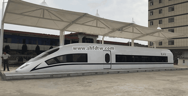 長(zhǎng) 25 米;寬 3.25 米;高 2.7 米;駕駛室根據(jù)和諧號(hào) CRH380B 動(dòng)車的外形 1:1 仿真制作, 駕駛室內(nèi)部設(shè)施均為 3d 模擬件。無(wú)功能。駕駛員 座椅 1 個(gè); |