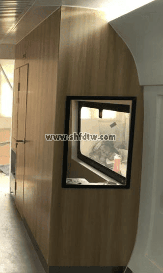 控制室采用 17mm 厚免漆裝飾板制成,安裝鋁合金扣條收口,控制室門為平開(kāi)門,門扇采用工業(yè)層板,設(shè)置有手動(dòng)門鎖和開(kāi)關(guān)門的把手??刂剖覂?nèi)配備電源按鈕、客艙管理器、燈光控制系統(tǒng),可以實(shí)現(xiàn)對(duì)客艙燈光、應(yīng)急燈光、廣播系統(tǒng)等的控制。