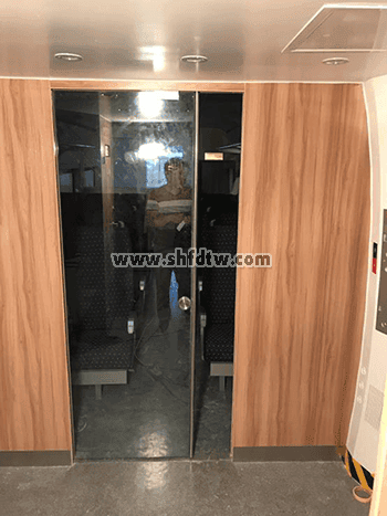 前車采用和諧號(hào)高鐵仿真車門,手動(dòng)開(kāi)門軌距 |