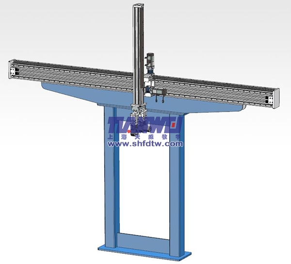 它由龍門桁架、雙機(jī)械手、橫向滑臺(tái)、縱向滑臺(tái)、齒輪齒條、伺服電機(jī)、減速器、旋轉(zhuǎn)氣缸、超程保護(hù)開(kāi)關(guān)、零點(diǎn)開(kāi)關(guān)、支座等組成。