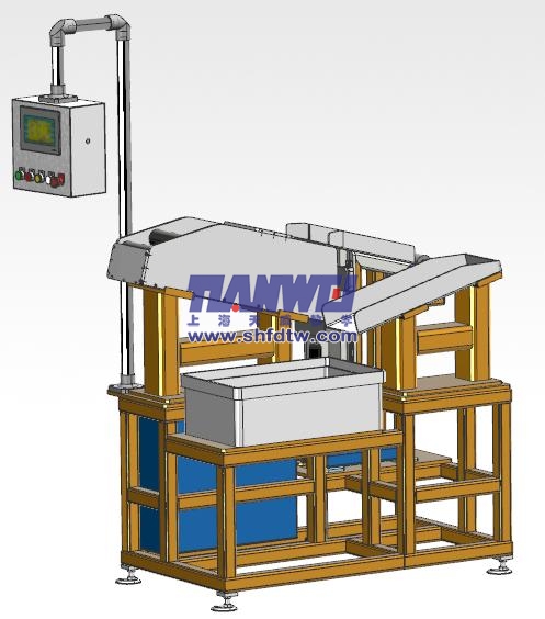 它由型材支架、送料料槽、成品料槽、提升送料機(jī)構(gòu)、直線導(dǎo)軌、送料滾道、回料滾道、定位V形槽、定位氣缸、電氣箱、PLC控制器、觸摸屏、物料檢測(cè)光纖開(kāi)關(guān)、啟動(dòng)、急停按鈕等組成。