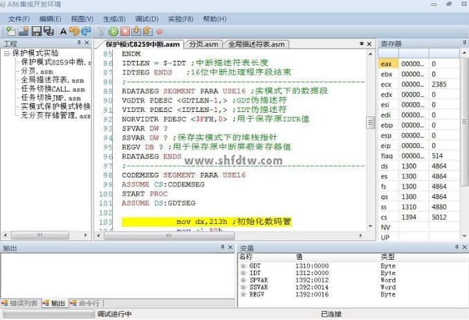 9. A86集成開發(fā)環(huán)境調(diào)試保護(hù)模式匯編程序界面