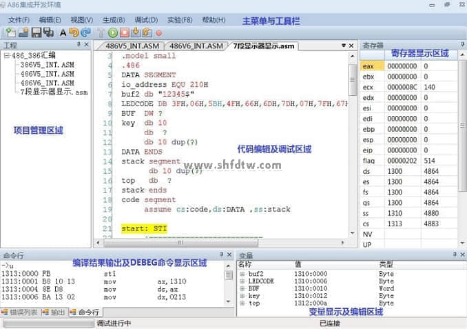 8.A86集成開發(fā)環(huán)境實模式下的調(diào)試軟件界面