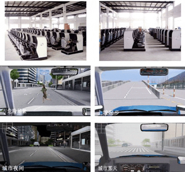 座艙包含了與真實(shí)車(chē)輛相同的操作部件,“五大”操縱機(jī)構(gòu):方向盤(pán)、離合器,腳剎,油門(mén)和手剎。真車(chē)變速器:倒檔、一檔、二檔、三檔、四檔、五檔和空擋(自動(dòng)檔只含前進(jìn)檔、倒車(chē)檔和駐車(chē)檔)。真車(chē)操作開(kāi)關(guān):左轉(zhuǎn)向燈、右轉(zhuǎn)向燈、應(yīng)急燈、喇叭、點(diǎn)火開(kāi)關(guān)、總電開(kāi)關(guān)、安全帶、車(chē)門(mén)、雨刷、遠(yuǎn)光燈、近光燈、遠(yuǎn)近光交替。