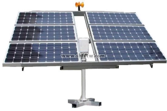 TW-SNY55型雙軸太陽跟蹤系統(tǒng)實驗裝置,由陽光電傳感器、太陽能電池組件、驅(qū)動電機及控制器、太陽能控制器,蓄電池和傳動執(zhí)行機構(gòu)組成。
