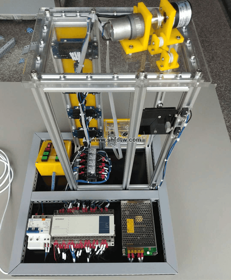 電梯為微型四層電梯模型,基本具備實際電梯的所有功能。具有轎廂的升降和轎廂門的開與關功能的拖動系統(tǒng),可采集現(xiàn)場的各種信號,如內(nèi)選按鈕信號、外選按鈕信號、平層、限位信號、廂門限位信號,實現(xiàn)各種方式下電梯運行的邏輯控制功能。可作為PLC、單片機的被控對象使用。具有性能可靠、運行平穩(wěn)、操作簡單、能耗低和便于實訓教學。