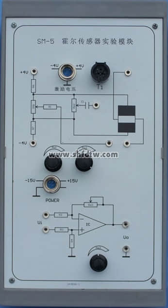 SM-5霍爾式傳感器實(shí)驗(yàn)?zāi)K:有霍爾式傳感器原理圖與處理電路原理圖及各測(cè)試點(diǎn)。