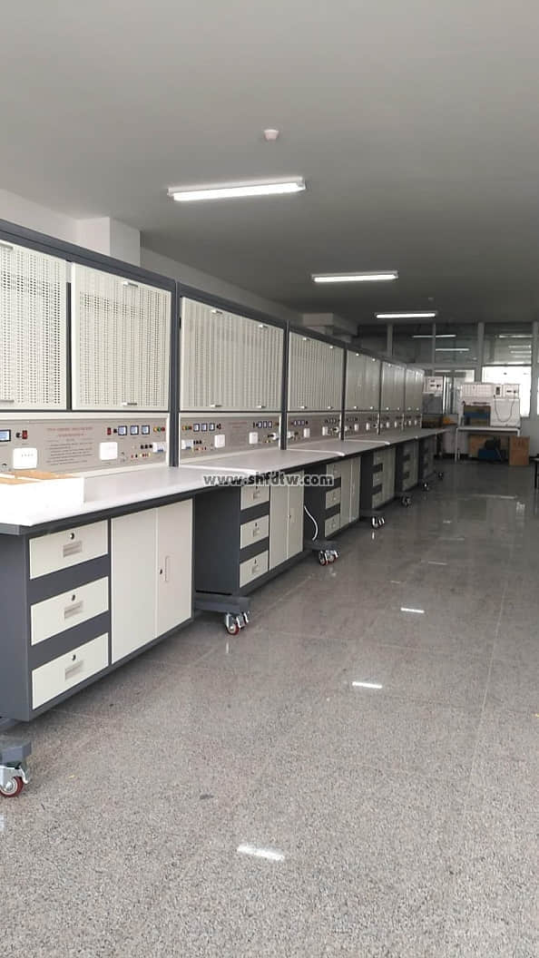 5、實訓(xùn)儲物柜采用標(biāo)準結(jié)構(gòu)和抽屜式,左側(cè)有3層抽屜,用于存放工具以及實訓(xùn)資料。