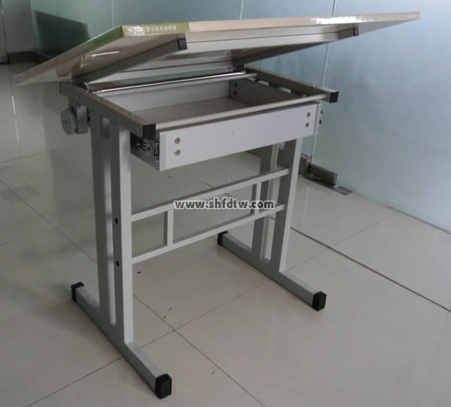多功能實(shí)用繪圖桌腳柱采用1.0×25×70mm矩管,著地橫管采用1.0×25×50mm矩管,圖板邊框和拉襯由1.0×20×20mm的方管組成。升降和調(diào)角軸采用厚度為0.6mm,直徑為19mm的不銹鋼管,采用滑槽調(diào)節(jié)圖板桌面的傾斜度。腳套是PVC材料。抽屜采用鋼制材料(改進(jìn)型)耐用可靠有鋼管材料采用高質(zhì)鋼管,都經(jīng)過(guò)酸洗、磷化、靜電噴塑、高溫固化或鍍鋅的技術(shù)處理,所有鐵件部分焊接都用二氧化碳?xì)怏w保護(hù)焊,。零配件用優(yōu)質(zhì)鋼材。
