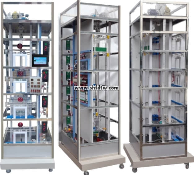 TWDT-04A型透明仿真電梯實(shí)訓(xùn)考核實(shí)驗(yàn)裝置 電梯是根據(jù)最常見的升降式電梯結(jié)構(gòu),采用透明有機(jī)材料制成,其結(jié)構(gòu)與實(shí)際電梯完全相同,且?guī)缀蹙邆淞藢?shí)際電梯的所有功能。事實(shí)上可以把它看作是小型化了的真實(shí)電梯。為了便于教學(xué),電梯大部分部件均是采用透明有機(jī)材料