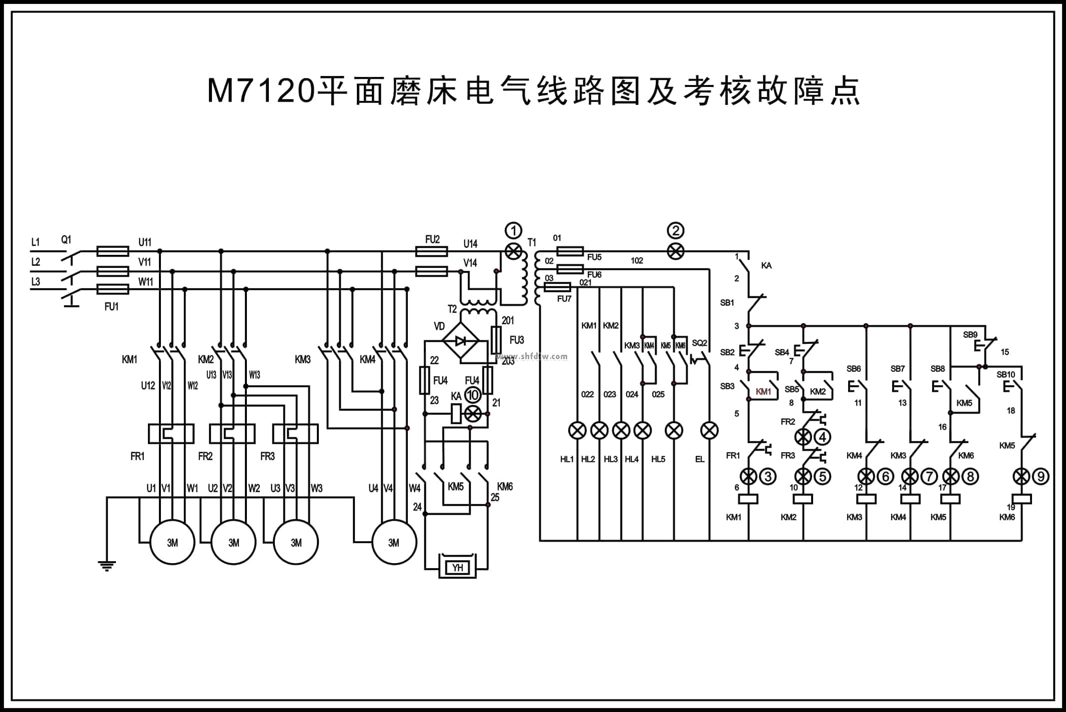 M7120平面磨床電氣線(xiàn)路圖及考核故障點(diǎn)