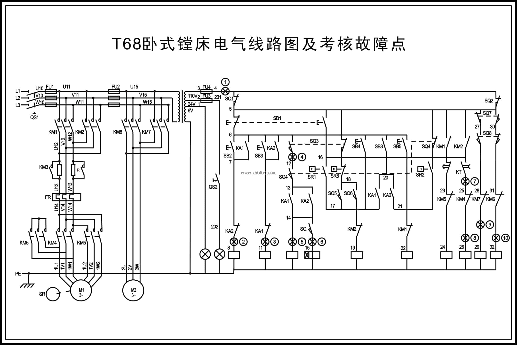 T68臥式鏜床電氣線(xiàn)路圖及考核故障點(diǎn)