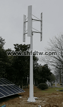10KW風(fēng)力發(fā)電系統(tǒng)由2臺(tái)(套)風(fēng)力并網(wǎng)控制系統(tǒng)、5KW垂直軸風(fēng)力發(fā)電機(jī)組、葉片、風(fēng)機(jī)控制系統(tǒng)、塔架等組成。