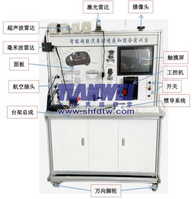 9、UV平板噴繪彩色面板完整展示毫米波雷達、超聲波雷達、激光雷達、相機、組合導(dǎo)航傳感器結(jié)構(gòu)與工作原理圖,并安裝用檢測端子,可實時檢測各種狀態(tài)下參數(shù)變化。