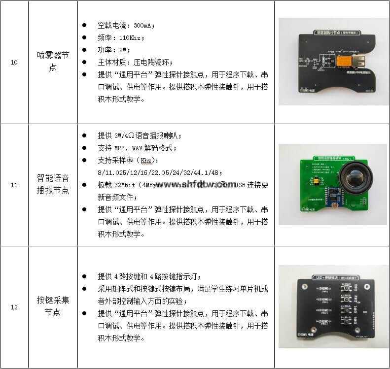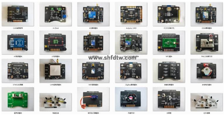 其他實驗模塊可選:智能語音播報節(jié)點、按鍵采集模塊、嵌入式開發(fā)主板、虛擬儀器模組、云平臺等