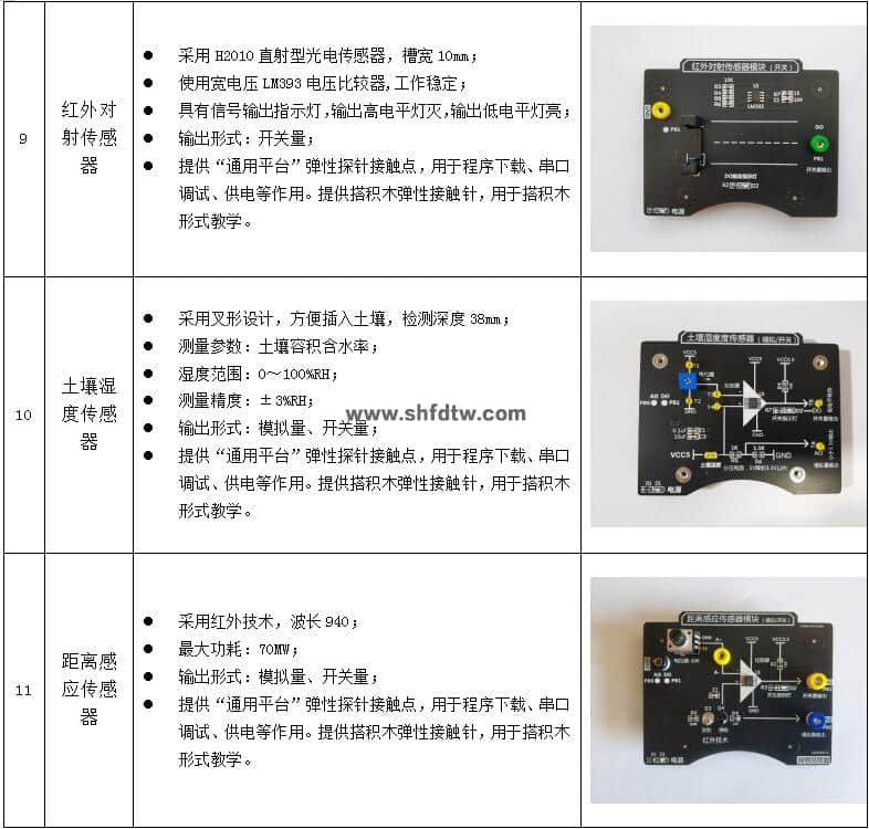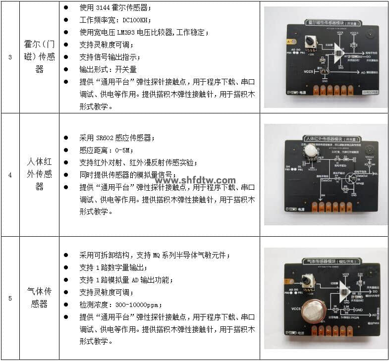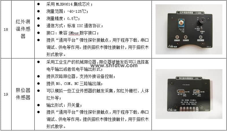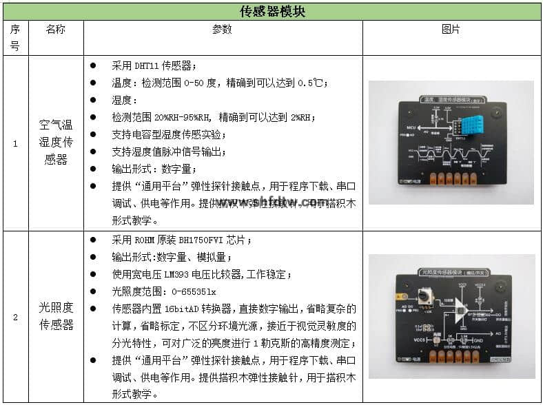 (標配)傳感器/執(zhí)行器模塊:提供溫濕度、光照、霍爾、人體紅外、氣體、紅外對射、重量、雙路繼電器、風扇、舵機執(zhí)行器模塊10種配套模組;