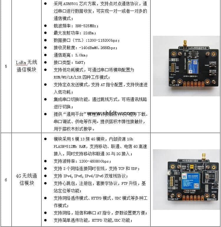 (選配)通信模塊:藍牙模塊(2個)、Lora模塊(2個)、4G模塊(1個)及其配套資料;