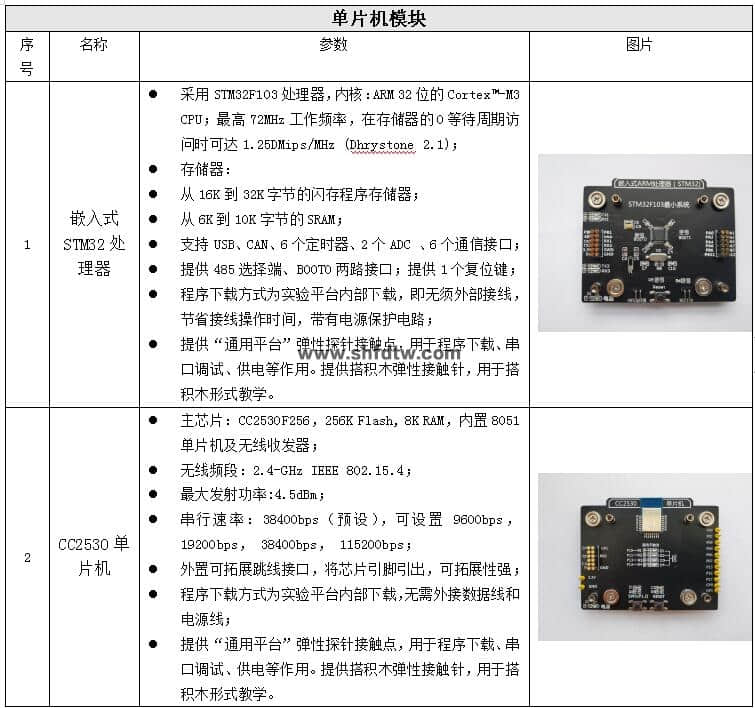 單片機模塊可選:嵌入式STM32單片機、CC2530單片機、Arduino UNO處理器模塊;
