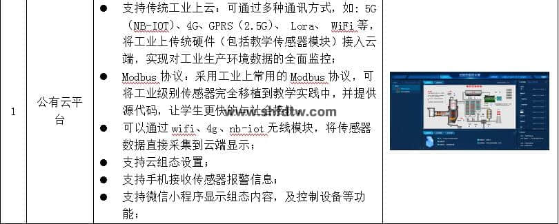 (選配)工業(yè)云平臺:可通過多種通訊方式,如: 5G(NB-IOT)、4G、GSM(2.5G)、WiFi等,將工業(yè)上傳統(tǒng)硬件(包括教學傳感器模塊)接入云端,實現(xiàn)對工業(yè)生產(chǎn)環(huán)境數(shù)據(jù)的全面監(jiān)控,支持云組態(tài)設置,支持手機接收傳感器報警信息;