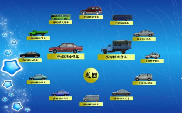 系統(tǒng)提供“手動(dòng)檔小汽車(chē)”,“手動(dòng)檔吉普車(chē)”,“手動(dòng)檔大貨車(chē)”,“手動(dòng)檔大客車(chē)”,“自動(dòng)檔小汽車(chē)”和“自動(dòng)檔吉普車(chē)”等訓(xùn)練車(chē)型。