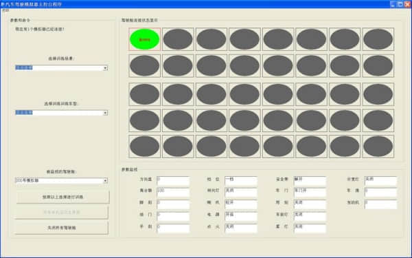 通過(guò)中央控制臺(tái),可以連接25臺(tái)駕駛艙進(jìn)行聯(lián)網(wǎng)訓(xùn)練。中央監(jiān)控臺(tái)由高性能計(jì)算機(jī)、、打印機(jī)、 100M 網(wǎng)絡(luò)交換機(jī)等組成。監(jiān)控計(jì)算機(jī)可以監(jiān)控任意一臺(tái)模擬器,監(jiān)視窗口將顯示與被監(jiān)視模擬器完全一樣的畫(huà)面,并實(shí)時(shí)圖形顯示其“五大”操作件——方向盤(pán)、離合器、腳制動(dòng)、油門(mén)及手制動(dòng)當(dāng)前的狀態(tài);另外檔位、喇叭、轉(zhuǎn)向燈、點(diǎn)火開(kāi)關(guān)等的狀態(tài)也通過(guò)圖示表示出來(lái)。監(jiān)控計(jì)算機(jī)可以查看聯(lián)網(wǎng)的每一臺(tái)模擬器當(dāng)前錯(cuò)誤操作的明細(xì)情況,并將訓(xùn)練成績(jī)進(jìn)行打印。