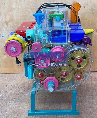 本品選用透明有機(jī)玻璃制作,內(nèi)中部件均以硬質(zhì)塑料料加工。各部分都以壓模成形加工,代替過去膠粘合的方法,使產(chǎn)品在強(qiáng)度上有很大提高。發(fā)動(dòng)機(jī)總成用電機(jī)驅(qū),能演示發(fā)動(dòng)機(jī)轉(zhuǎn)速高低。