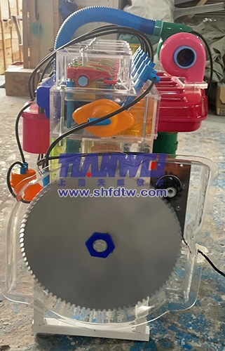 本品選用透明有機玻璃制作,內(nèi)中部件均以硬質(zhì)塑料料加工。各部分都以壓模成形加工,代替過去膠粘合的方法,使產(chǎn)品在強度上有很大提高。發(fā)動機總成用電機驅(qū),能演示發(fā)動機轉(zhuǎn)速高低。