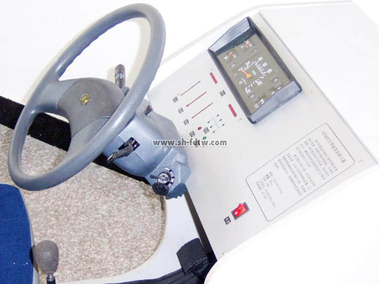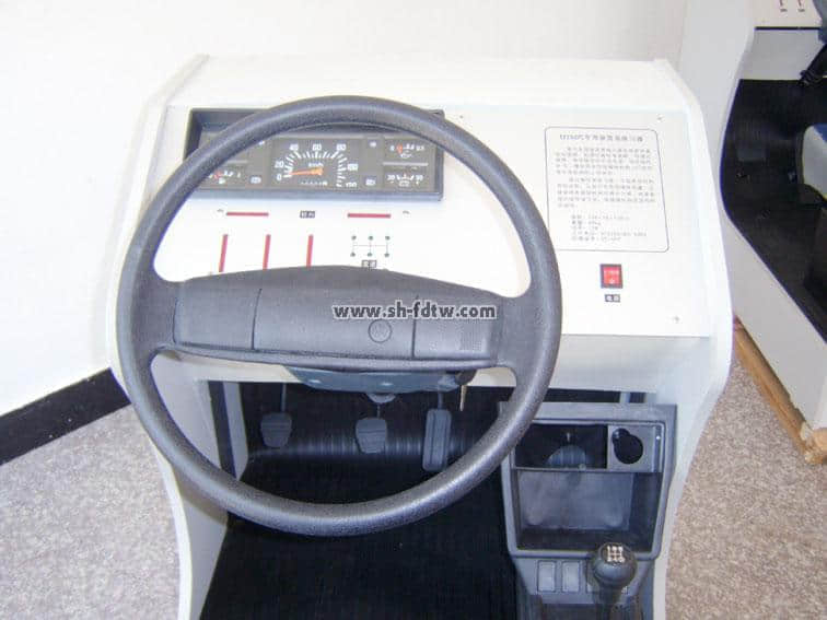 本練習(xí)器為配合交通部標(biāo)準(zhǔn)JT/T433-2005的要求而研制。輔助顯示器有顯示功能:在駕駛訓(xùn)練過程能實(shí)時(shí)顯示離合器、制動(dòng)、變速器、油門、方向盤、、駐車、轉(zhuǎn)向燈等操作機(jī)構(gòu)的工作狀態(tài)。