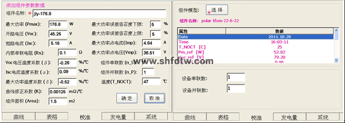 ● 內(nèi)置豐富的太陽能電池組件修正模型數(shù)據(jù)庫,覆蓋大多數(shù)組件生產(chǎn)商的產(chǎn)品,為測試結(jié)果的轉(zhuǎn)換比對提供參考,并為用戶提供了全面的參數(shù)設(shè)置功能,方便用戶手動添加測試修正模型。