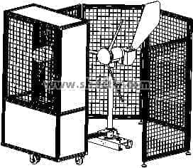 葉片、輪轂、發(fā)電機(jī)、機(jī)艙、尾舵和側(cè)風(fēng)偏航控制機(jī)構(gòu)組裝成水平軸永磁同步風(fēng)力發(fā)電機(jī),安裝在塔架上。風(fēng)場由軸流風(fēng)機(jī)、軸流風(fēng)機(jī)支架、軸流風(fēng)機(jī)框罩、測速儀、測速儀支架、風(fēng)場運(yùn)動機(jī)構(gòu)箱體、傳動齒輪鏈機(jī)構(gòu)、單相交流電動機(jī)、滾輪和萬向輪等組成。軸流風(fēng)機(jī)和軸流風(fēng)機(jī)框罩安裝在風(fēng)場運(yùn)動機(jī)構(gòu)箱體上部,傳動齒輪鏈機(jī)構(gòu)、單相交流電動機(jī)、滾輪和萬向輪組成風(fēng)場運(yùn)動機(jī)構(gòu)。當(dāng)風(fēng)場運(yùn)動機(jī)構(gòu)中的單相交流電動機(jī)旋轉(zhuǎn)時,傳動齒輪鏈機(jī)構(gòu)帶動滾輪轉(zhuǎn)動,風(fēng)場運(yùn)動機(jī)構(gòu)箱體圍繞風(fēng)力發(fā)電機(jī)的塔架作圓周旋轉(zhuǎn)運(yùn)動,當(dāng)軸流風(fēng)機(jī)輸送可變風(fēng)量風(fēng)時,在風(fēng)力發(fā)電機(jī)周圍形成風(fēng)向和風(fēng)速可變的風(fēng)場。