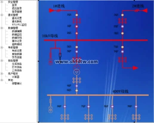 配電屏包括以下核心構(gòu)成部分:變配所一次接線系統(tǒng)、1塊多功能微機(jī)保護(hù)裝置、微機(jī)型遠(yuǎn)動(dòng)測控單元(RTU裝置)、彩色觸摸屏等。示意圖如下;