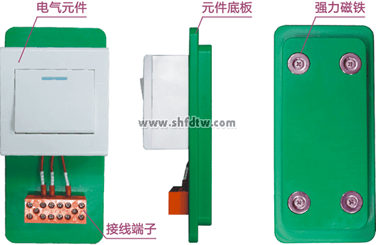 (2)模塊底板(基座)的制作要求:模塊底板采用電木或者聚乙烯等絕緣材料一次成型,要求無(wú)毒、無(wú)味,具有良好塑性;外形設(shè)計(jì)人性化,符合人體工學(xué),具有安全性,其存取、放置、移動(dòng)的過(guò)程中應(yīng)可實(shí)現(xiàn)安全、舒適、自然的操作;模塊底板必須具備重復(fù)利用的特性,同一孔位通過(guò)M3或M4自攻螺絲安裝、更換接線端子排30次以上,模塊底板上的螺絲底孔依然不滑牙、松壞,且底板不變形。