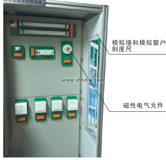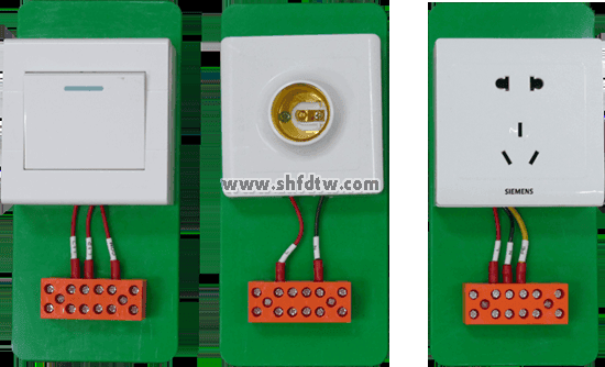 3、設(shè)備配置:柜內(nèi)裝有單聯(lián)開(kāi)關(guān)、雙聯(lián)開(kāi)關(guān)、單三相電度表、照明燈、日光燈等各種實(shí)訓(xùn)元器件,且所有器件的接線都在接線端子排上進(jìn)行接線,從而避免了因長(zhǎng)時(shí)間在器件本身進(jìn)行走線而導(dǎo)致其損壞,通過(guò)走線槽進(jìn)行工藝布線。內(nèi)含:電源開(kāi)關(guān)(單相斷路器3只、三相斷路器1只)、電能表2只、照明燈(白熾燈、日光燈各1個(gè))、熔斷器2個(gè)(備注額定電流32A以上)、漏電保護(hù)器1個(gè)、組合開(kāi)關(guān)1個(gè)、單雙聯(lián)開(kāi)關(guān)各1個(gè)及接線端子若干。