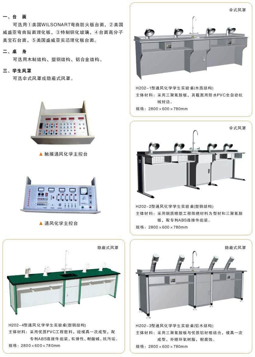 化學(xué)通風(fēng)實驗臺適用于高中、初級中學(xué)、職業(yè)、技?;瘜W(xué)實驗室,高校有機(jī)化學(xué)、應(yīng)用化學(xué)等專業(yè)實驗室,新的設(shè)計與布局使該裝置有效的排出在化學(xué)實驗中所產(chǎn)生的有害氣體及蒸汽,從而保證師生在無污染中工作學(xué)習(xí),不需通風(fēng)時,可隱蔽到實驗桌成為水平、不會擋住教師的視線。有效提高實驗質(zhì)量,是學(xué)校實驗室規(guī)范化、標(biāo)準(zhǔn)化、上水平、上檔次的重要標(biāo)志。