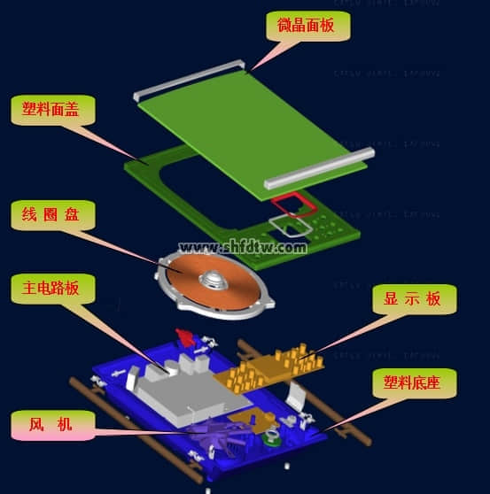 ⑶、電控系統(tǒng)主要由主電路板、顯示板、線圈盤等組件構(gòu)成。