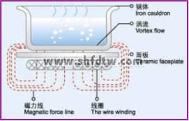 當(dāng)電磁爐在正常工作時,由整流電路將50Hz的交流電壓變成直流電壓,再經(jīng)過控制電路將直流電壓轉(zhuǎn)換成頻率為20-40KHz的高頻電壓。電磁爐線圈盤上就會產(chǎn)生交變磁場,磁力線就會在鍋具底部反復(fù)切割變化,使鍋具底部產(chǎn)生環(huán)狀電流(渦流),并利用無數(shù)的小渦流高速振蕩鐵分子,致使器皿本身自行高速發(fā)熱,然后通過熱量傳遞原理,使器皿加熱盛裝在其內(nèi)的東西。