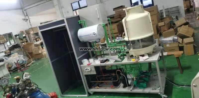 中央空調(diào)實驗設備是將中央空調(diào)微型化,同時保持整個中央空調(diào)教學設備的完整性和合理性。本實驗臺能單獨演示中央空調(diào)的夏天制冷、冬天制熱循環(huán),控制系統(tǒng)由總控臺采用數(shù)控電路控制。用溫度顯示器分別檢測蒸發(fā)器、冷凝器、冷卻塔、模擬鍋爐的進出口溫度,便于學員觀察、了解各物理參數(shù)的變化情況和系統(tǒng)的工作狀況。實驗臺增加了一些輔助結構,使其能人為地制造各種在實際中可能產(chǎn)生的系統(tǒng)故障,方便學員了解故障的產(chǎn)生和排除故障的方法。特點是,通過傳感器將空調(diào)狀況實時反饋至電腦,能夠同時顯示蒸發(fā)器、冷凝器、模擬鍋爐、冷卻塔的進出口溫度,房間風管溫度,隨時顯示制冷或制熱的設定溫度。有利于教學記錄、采樣、通過打印可提供進行理論分析的根據(jù)。本實驗設備配備了電腦插口、電壓表、電流表、壓力表、溫度顯示器、工作指示燈、故障演示按鈕。壓縮機、蒸發(fā)器(透明蓋)、冷凝器(透明蓋)、壓力控制器、毛細管、過濾器、膨脹閥、視液鏡、儲液器、噴淋式冷卻塔、冷卻一級泵、冷卻二級泵、制冷一級泵、制冷二級泵等。